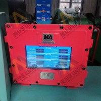 各類傳感器的感應信號由線纜傳輸到主機,通過光電隔離后信號輸送到西門子系列可編程PLC主控板上,通過內部分析運算,PLC通過集成串口信號線或者網口信號把數值內容發送到10.1寸液晶工控屏,提升機閘間隙值、磨損值、絞車滾筒大邊的偏擺值、油壓溫度、振動(選配)等數據會在線顯示在屏幕上,當這些監測數據大于或小于設定預設值時,數據經分析確定輸出聲光提示信號,同時一次保護繼電器動作,當絞車停止后,二次保護制動繼電器動作,可以閉鎖二次開車。