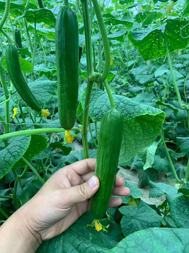 連續(xù)結(jié)瓜能力強(qiáng),返頭能力強(qiáng),不歇秧,產(chǎn)量高,腰瓜長(zhǎng)36cm左右,短把,密刺,顏色均勻,油亮型.瓜條順直.