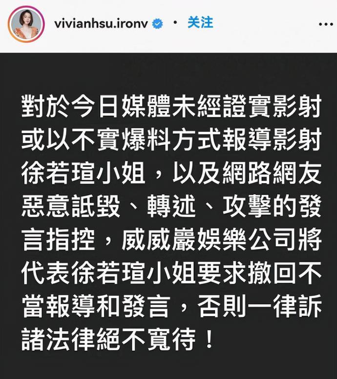 對此徐若瑄深夜回應,稱網上含沙射影的揣測屬于惡意詆毀,希望大家可以盡快刪除,否則一律起訴用法律解決。