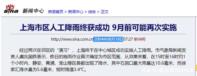 18年前上海就已經成功實踐過了人工降雨的辦法,將200公斤的碘化銀和丙酮溶劑播撒到市區上空的云層里,促進雨云形成。