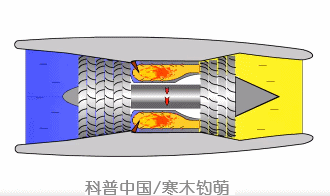 ▲高涵道比的發動機,主要推力不是來自于向后噴出的高溫燃氣,而是來自于外涵道高速向后噴出的空氣。