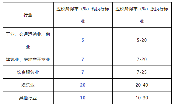 意見稿調整了行業所得稅率,統統按原執行最低標準執行,具體如下: