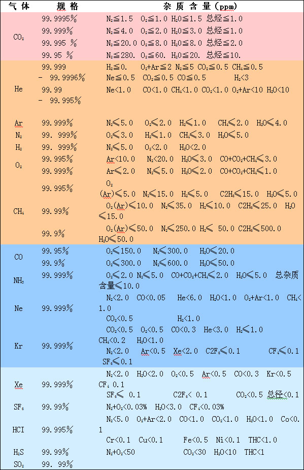 高純氣體與標準氣體的適用范圍