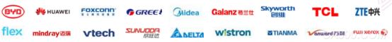 富士康、邁瑞醫療、萬代玩具、益達服裝、中興通訊、格蘭仕、京瓷、創維、萬家樂、美的、比亞迪、華為、一汽-大眾、安吉爾、比亞迪鋰電池、創維、美的廚熱、美的制冷、美的家電、順絡電子、偉易達、康佳、偉創力、理光等。