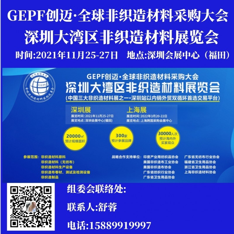 2021全球非織造材料采購大會 |深圳大灣區非織造材料展-參展咨詢:15889919997舒蓉