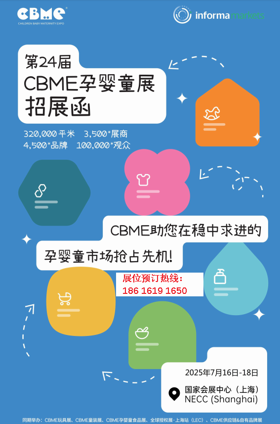 「CBME 孕嬰童展」(以下簡(jiǎn)稱「CBME」)始于 2001 年,至今已在中國(guó)成功舉辦了 23屆。CBME 孕嬰童展作為全球知名的孕嬰童全渠道商貿(mào)服務(wù)平臺(tái),每年在上海舉辦。CBME 在中國(guó)取得巨大成功的同時(shí),已擴(kuò)展至土耳其、印度、印度尼西亞等國(guó)家,致力于推動(dòng)和促進(jìn)全球孕嬰童產(chǎn)業(yè)的國(guó)際交流與貿(mào)易合作。目前,CBME 已成功舉辦了數(shù)百場(chǎng)高質(zhì)量的行業(yè)活動(dòng),包括會(huì)議、培訓(xùn)、賽事、私人配對(duì)會(huì)、行業(yè)獎(jiǎng)項(xiàng)以及行業(yè)報(bào)告發(fā)布等。2025 年,CBME 將繼續(xù)在年度展會(huì)之外,于全年不同時(shí)段及地區(qū),舉辦眾多精彩的行業(yè)活動(dòng),助力孕嬰童行業(yè)、泛母嬰領(lǐng)域的新發(fā)展。