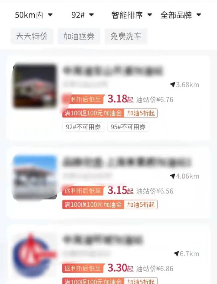 大概每升便宜0.5元左右,加上加油金和優惠券每單也最多只能優惠10-20元左右。