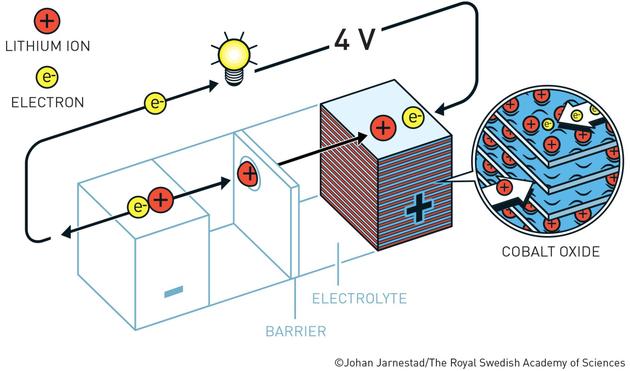 20世紀70年代初,斯坦利·惠廷漢姆(Stanley Whittingham,今年的化學獎得主)開發出第一塊可工作的鋰電池時,他利用鋰的巨大動力釋放其外部電子。