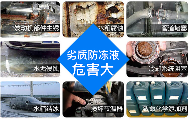 注意六:選擇防凍液的另一個(gè)關(guān)鍵是確保安全性。防凍液兼具防腐、防垢、防沸、防凍、防銹等功效,還能對(duì)水箱起到很好的保護(hù),一年四季都可使用。優(yōu)質(zhì)防凍液外觀應(yīng)清亮透明,并有醒目的顏色,無(wú)異味,而一些劣質(zhì)防凍液根本不具備抗凍及防止開(kāi)鍋功能,有的防凍液雖然冰點(diǎn)及沸點(diǎn)合格,但卻有腐蝕性,能把水箱及管路“咬”的千瘡百孔,影響行車(chē)。