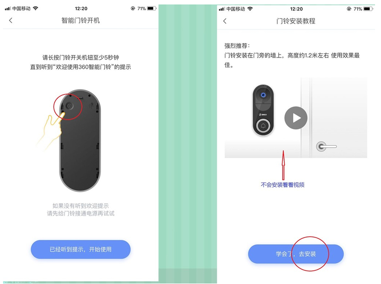 使用這個(gè)360智能門鈴,最麻煩的是把門鈴跟手機(jī)連接到一起,只有連接起來,才能體驗(yàn)到智能門鈴的方便之處!