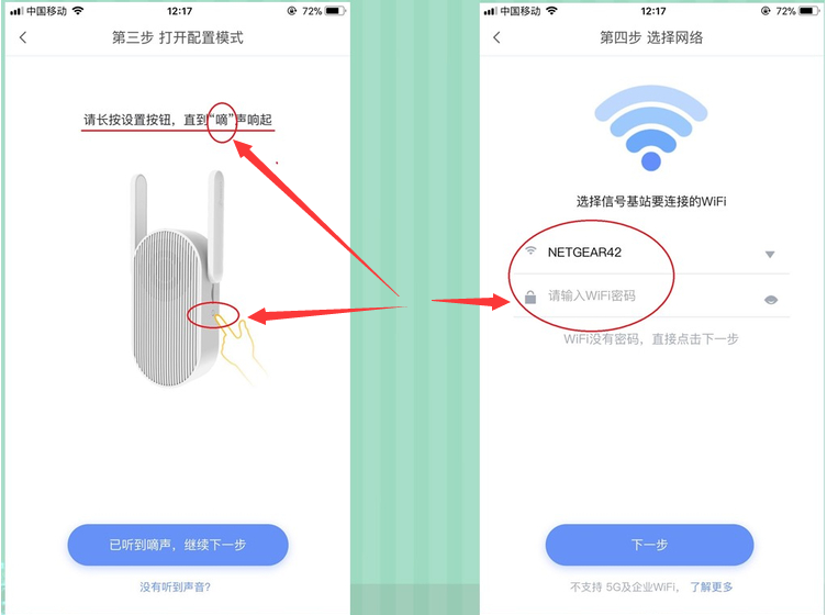 按照提示,長(zhǎng)按“SET”按鈕,基站開始連接網(wǎng)絡(luò)!搜索到網(wǎng)絡(luò)后,手機(jī)端會(huì)彈出網(wǎng)絡(luò)名稱,并要求輸入wIfI密碼!(無線密碼里別設(shè)置特殊符號(hào)!以免連接失敗)