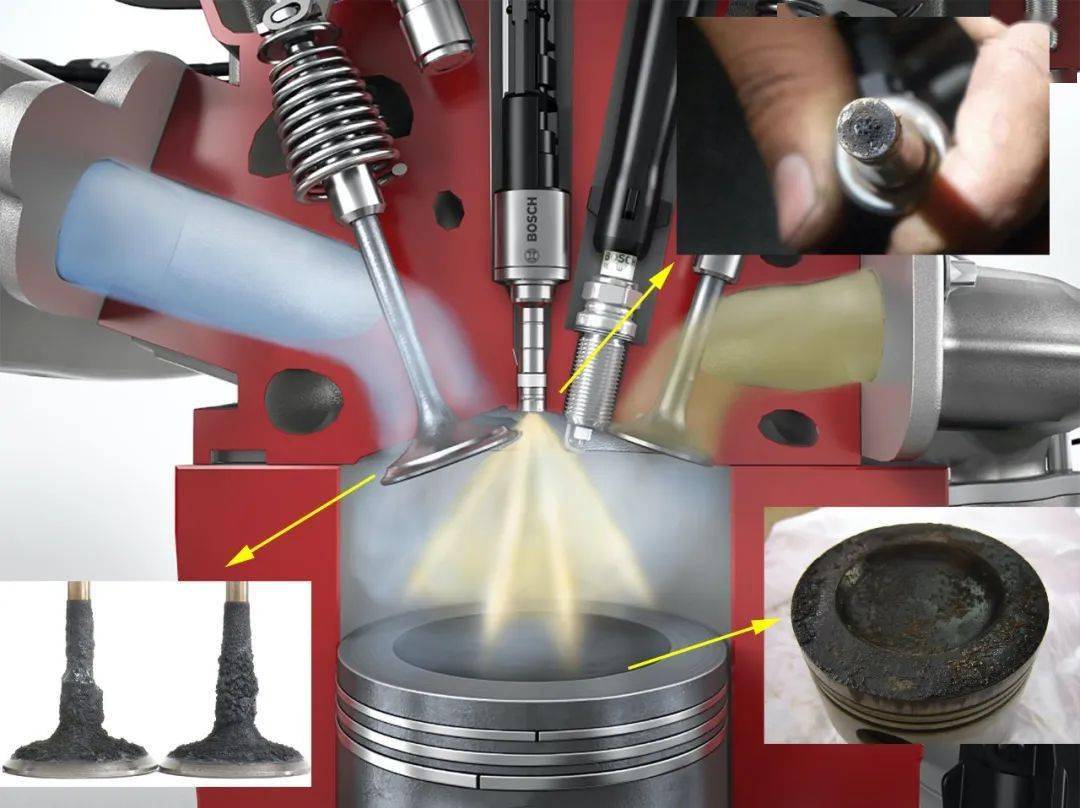 ▲積炭的主要位置是進(jìn)氣閥、噴油嘴和活塞