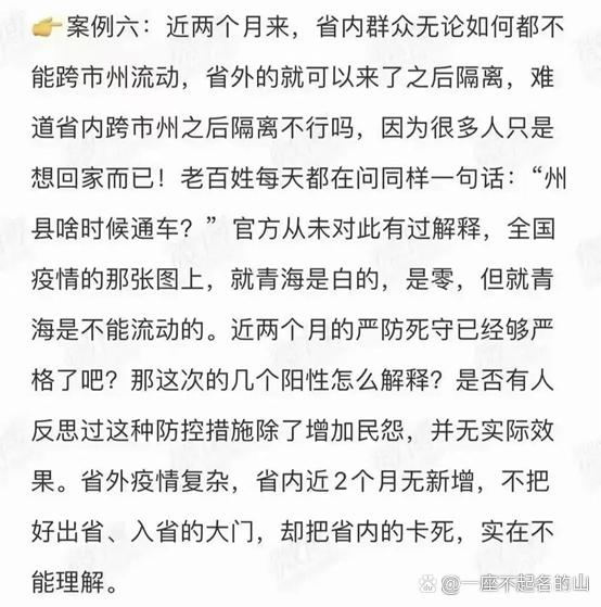 在當事人的帖子上,千言萬語,感到心痛難過的,也只有遙遠的陌生人與一樣遭遇的同類人!面對這一系列出現的衍生問題,民眾又該找誰訴說,這是一個必須要提上臺階的硬性考量。西寧的民眾不愿意看到,類似上面音頻中,女士打了幾乎所有的ZF民生電話,要么打不通的現象;更無法接受,打通了,問詢一下廁所沒有水,吃不上飯的情況等等,得到的是模棱兩可的,推諉扯皮的答復。沒有人再愿意聽,向領導反映了,向領導反映了......信譽本不該如此!
