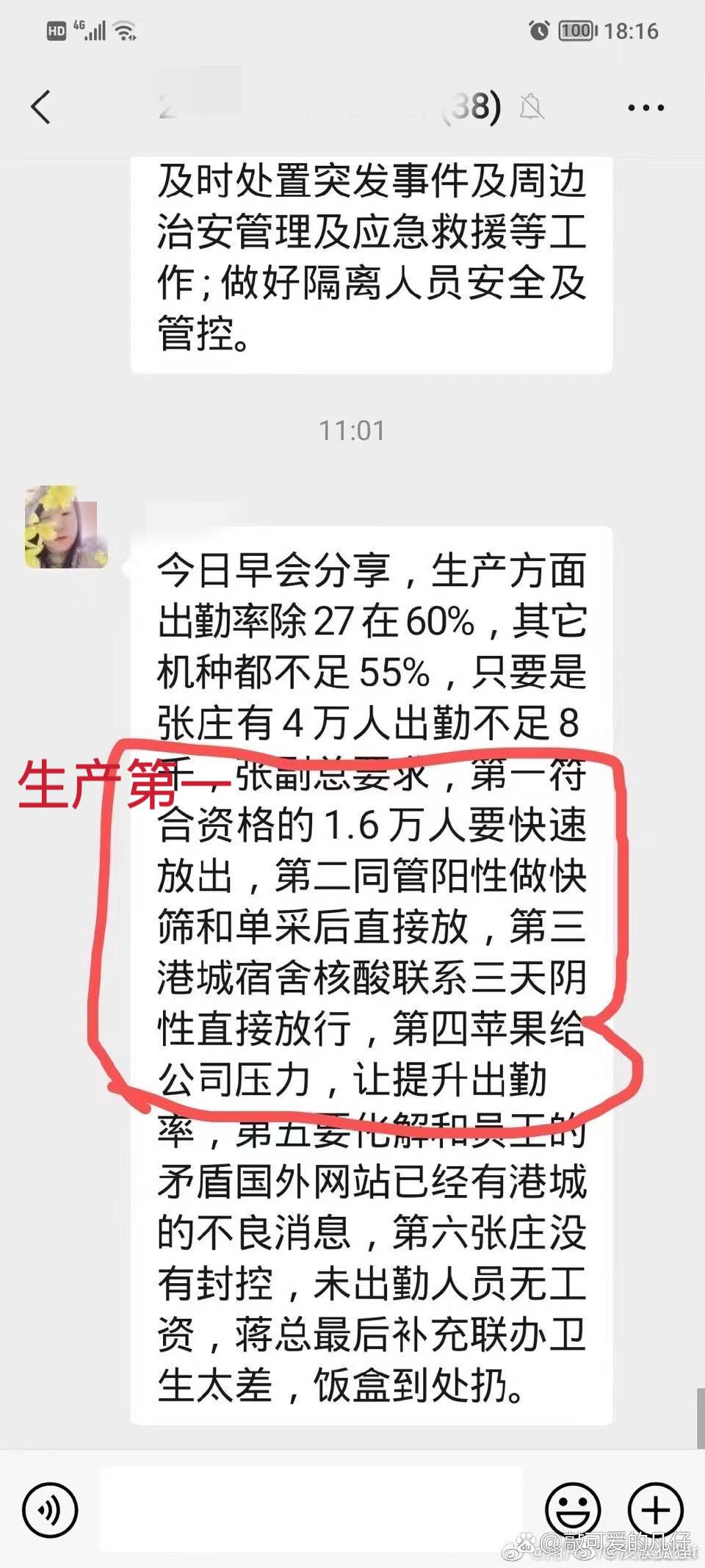 姑且不說看到的大亂象,說說我身邊很貼近的真實案例吧。我是今年富士康剛招收的2022屆菁干班中的一名成員,菁干班里面都是今年剛畢業的本科生和研究生。由于想讓我們熟悉和了解富士康每個工藝及環節,我們前三個月會被分配進入車間參觀和學習,疫情開始的時候我們本應該要結束歷練,由于疫情嚴重延期了。