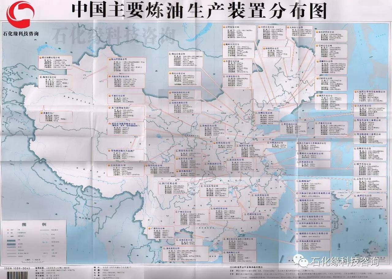 2017中國煉油生產裝置分布圖,500萬噸加工煉油廠分布圖,PX裝置、烷基化裝置分布圖,全國油氣田、煤炭資源分布圖,化工設計院分布圖,焦化廠分布圖,化工業園區分布圖以及天然氣管道等分布地圖。