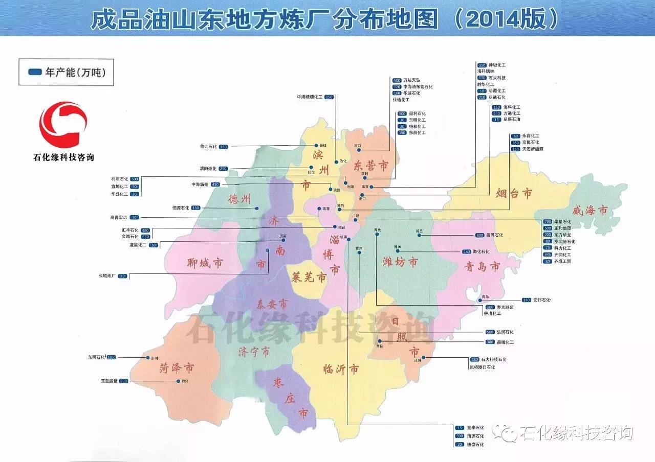 圖2:成品油山東地方煉廠分布地圖