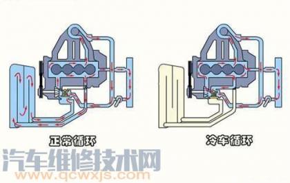 汽車冷卻系統中的防凍液是處于一個半封閉系統中循環工作的,這個系統主要包括發動機冷卻水道,冷卻水管,散熱器,水泵,暖風水箱等。防凍液就在這個小環境中循環散熱,并給暖風提供熱量。
