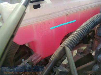 不過一般情況下加多點也無所謂,只要不加到全滿就行,上圖是我的車的冷卻液,保養時特意多加了點,藍色線是高位,我比高位高多了。從來沒泄漏。因為發動機很少高負荷運轉。www。qcwxjs.com