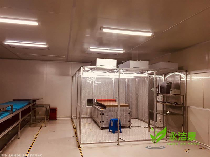 • 潔凈棚:其框架材料一般可選用不銹鋼方通、烤漆鐵方通或工業(yè)鋁型材,頂部及周圍材料則包括不銹鋼鋼板、烤漆冷塑鋼板、防靜電網(wǎng)格簾及壓克力有機(jī)玻璃等。送風(fēng)部分主要采用FFU潔凈送風(fēng)單元。