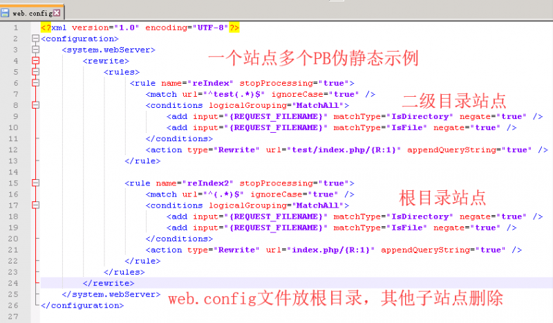 IIS環境下PBootcms、Thinkphp二級目錄偽靜態web.config配置規則
