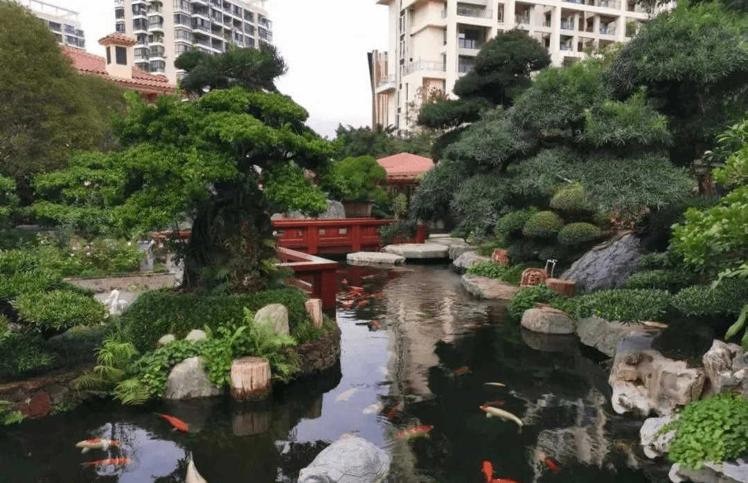 枯山水:是日本園林的精華,實質上是以砂代水,以石代島的做法。用極少的構成要素達到極大的意蘊效果,追求禪意的枯寂美。