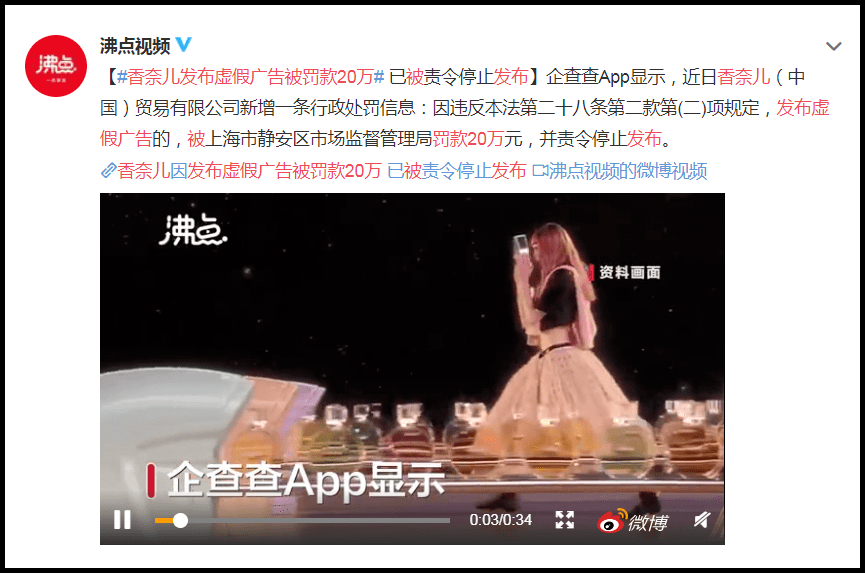 #香奈兒發(fā)布虛假廣告被罰款20萬#