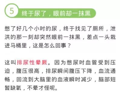 前面已經說了,憋尿時間長,切忌尿的快,如果你不想一頭栽倒在便池里,那就扶著墻,慢點尿,特別是老年人,需要注意。