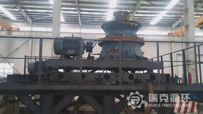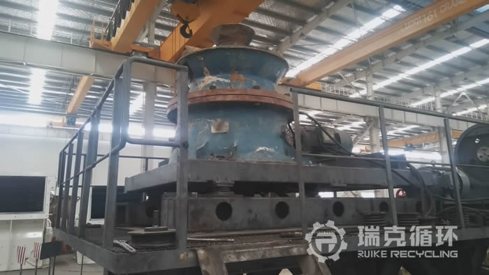 該臺H-3000圓錐破碎機是我公司山東某地回收的,回收之前一直從事花崗巖的破碎工作,由于該企業有其它發展設備轉讓給我公司。我公司技術人員在現場對該設備進行了檢查,主要零部件保存的還比較完整,設備運回公司以后,對該設備進行了拆機檢查,發現動錐完好,主軸沒有磨損,襯板有磨損現象,其它零部件基本保存的比較完成,根據實際檢查情況作出了維修方案,完成維修之后重新進行安裝,并且在我公司試機平臺上進行了數個小時的試機,試機中該設備性能十分穩定,沒有出現不良現象。