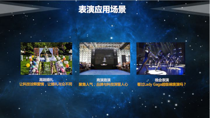 ),配合舞者實現(xiàn)人機互動表演,無人機燈光秀等新潮科技節(jié)目。