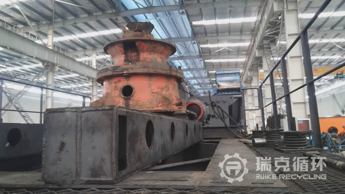 該臺GP100液壓圓錐破碎機投入生產到我公司回收使用的時間并不長,設備是山東某砂石生產企業購買的,用于制砂生產線中,該砂石生產企業在生產了一段時間以后由于當地環境保護的力度不斷增大,將該企業關停,隨后被閑置堆放。該臺設備被我公司回收以后,外觀有明顯的銹跡但內部結構保存的還比較良好,公司技術人員對該臺設備進行的拆機檢查維護,發現頂部軸承,動錐部位,主軸這些關鍵部位都完好無損,公司對其它有磨損的部位進行了修復重新更換了易損件,并且進行了系統的維護保養。