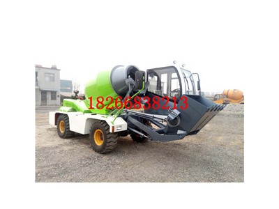 自行研發自行設計自行生產的自上料混凝土攪拌車,是一個自已上料后攪拌并可以行走式攪拌機。