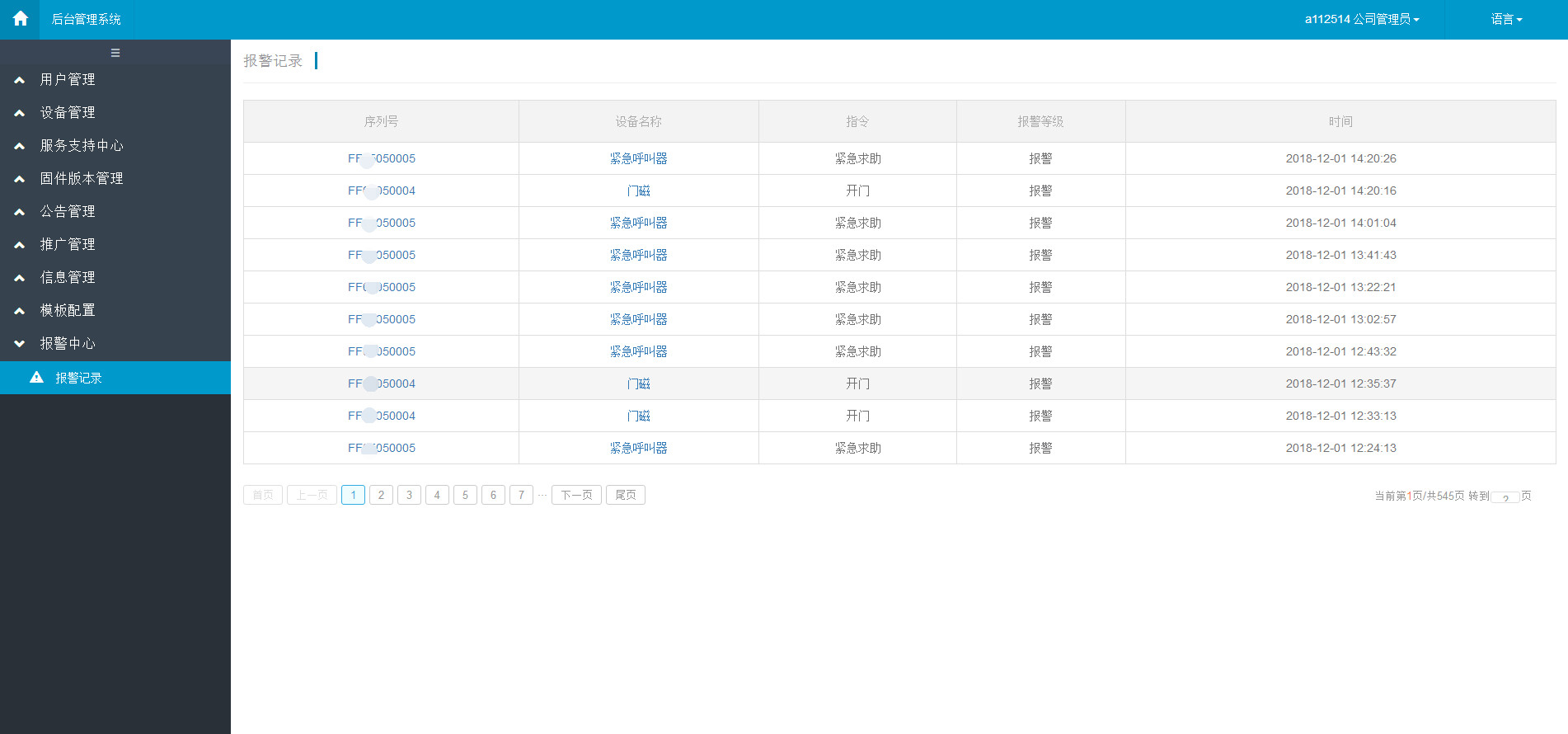 當意外發生時,管理后臺會馬上彈框報警家庭、報警設備、報警內容、報警等級、時間等信息,方便政府管理員和社區管理員了解具體情況及時響應。