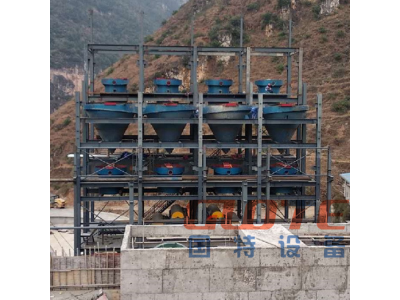 一般工藝流程為:“原礦—粗碎—中碎—預先篩分—磨礦—脫泥—粗粒分級—脫泥—板式磁選機粗選—立環(huán)高梯度磁選機精選—細粒分級—脫水”的工藝流程進行濕法石英精砂的生產。