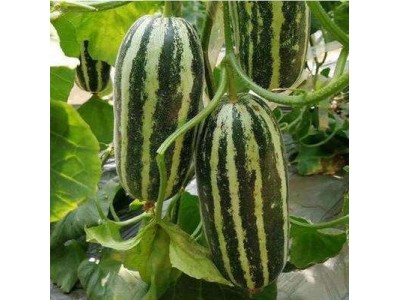 【 綠寶甜瓜】 該品種有以下特點(diǎn);抗病性極強(qiáng),產(chǎn)量高。果實(shí)高圓形,整齊豐滿性好,膨果快,外觀極其美麗,艷麗誘人,果皮堅(jiān)韌,特耐裂,耐儲運(yùn),商品果保質(zhì)期長,果肉厚3-4cm,具有迷人的甘甜香潤,成熟時果皮黃綠色,果肉青綠色,甜味清香,糖度高,口感好,可溶性物質(zhì)含量高,折光糖17-19度,座果后30天左右成熟,單瓜重一般600-750克,可用于日光溫室吊蔓、大棚吊蔓、露地、地膜、拱棚栽培的最佳品種,該品種適合全國各地區(qū)栽培。