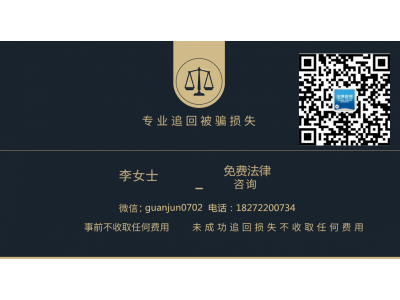 【李專員法律咨詢:微信:guanjun0702 tel:18272200734 虧損可挽回,不追回分文不取】