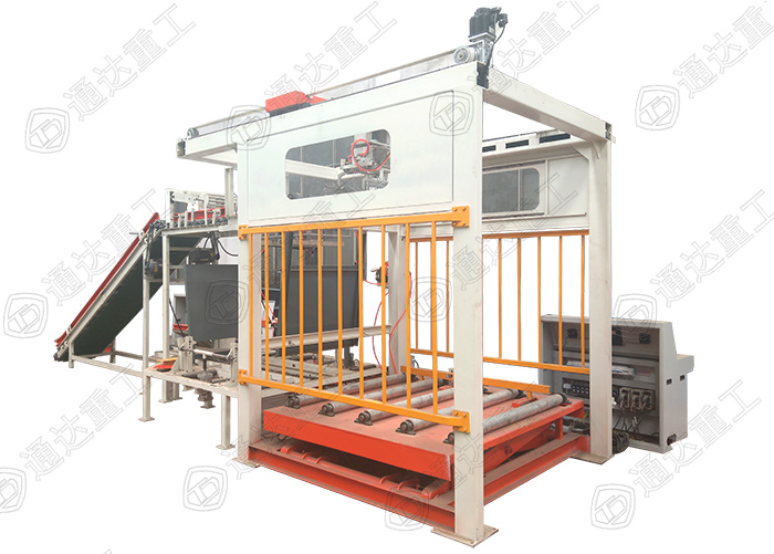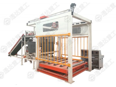 有機(jī)肥自動(dòng)碼垛機(jī)的工作原理是平板上工件符合棧板要求的一層工件,平板及工件向前移動(dòng)直至棧板垂直面。上方擋料桿下降,另三方定位擋桿起動(dòng)夾緊,此時(shí)平板復(fù)位。各工件下降到棧板平面,棧板平面與平板底面相距10mm,棧板下降一個(gè)工件高度。往復(fù)上述直到棧板堆碼達(dá)到設(shè)定要求。