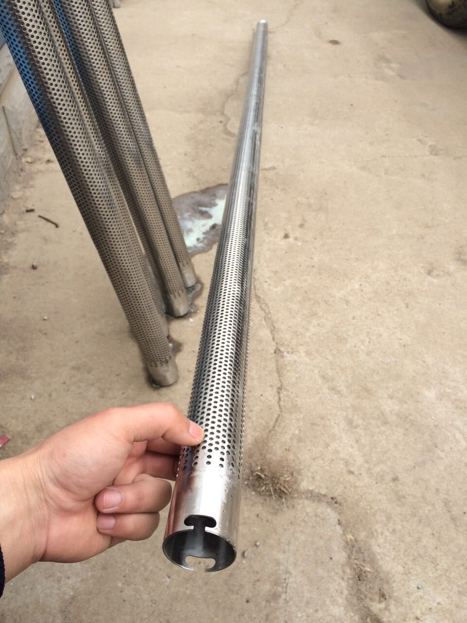 3、我廠生產的沖孔管優點:焊縫均勻,抗壓能力強,圓度標準,直度好。