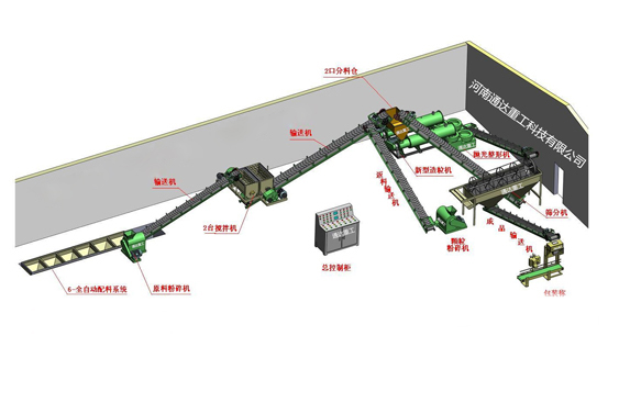 3、原料造粒: 將攪拌均勻的原料送入造粒機造粒(可用轉(zhuǎn)鼓造粒機,也可選用擠壓造粒機)。
