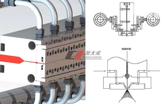 3. 擠出模具及噴絲板件:分為垂直式和水平式結構,使生產的紡粘無紡布鋪網均勻、強力好,透氣性好;