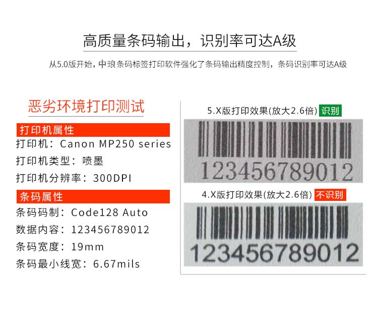 中瑯防偽標簽制作軟件采用DPI驅動模塊寬度優化算法,強化了條碼輸出精度控制,條碼識別率可達A級。