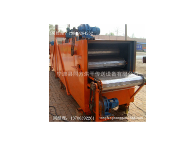 燃煤式烘干機,以煤為燃料達到溫度效果,升溫快,成本低。烘干機內部輸送帶為不銹鋼鏈板輸送帶。