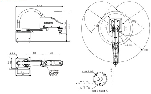 BRTIRSC0603A type robot is a four axis robot that developed for some monoto nous, frequent and repetitive long-term operations. The maximum arm length is 600mm. The maximum load is 3KG. Suitable for printing and packag Ing, metal processing, textile home furnishing, electronic equipment, and other fi elds. The protecti on grade reaches IP54The repeat positioning accura cy is 0.02mm.