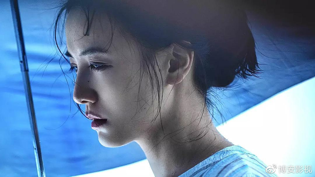 再看劇照,窗戶將兩人巧妙分隔,似笑非笑;雨傘下女人凌亂的頭發,而藍色的傘正代表憂郁……