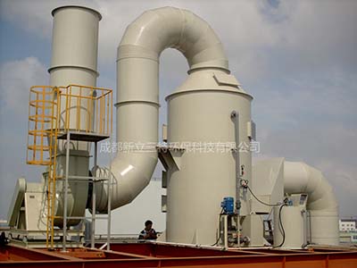 設(shè)備的組成由廢氣發(fā)生源工作吸風(fēng)罩、防腐通風(fēng)管道、排風(fēng)機、風(fēng)量控制、吸收塔塔體、吸收液循環(huán)輸送系統(tǒng)、噴淋裝置、除霧裝置、加藥裝置、儲液箱、填料吸附系統(tǒng)、控制系統(tǒng)等組成,是目前凈化廢氣效率高,工藝較先進、結(jié)構(gòu)合理設(shè)備之一。