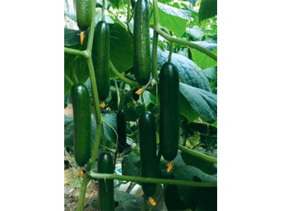 耐炎17,該品種株型緊湊,長勢強,龍頭大,葉片中等,節間適中,主蔓結瓜,瓜碼密,連續結瓜能力強,不歇秧,產量高。瓜條長度 36 厘米左右,短把,密刺,顏色黑亮,順直,整齊,瓜條性狀穩定。