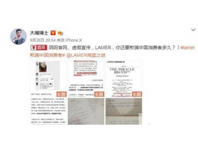 貴婦品牌LAMER被微博致命美妝博主告上法庭,原因是其虛假宣傳并不存在的修復疤痕功效,LAMER欺騙中國消費者購買,而且僅在中國虛假宣傳,該行為已嚴重違反我國廣告法。