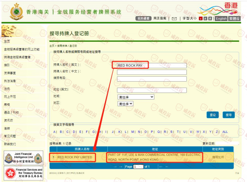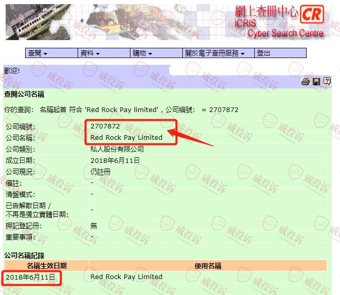 下圖是 Red Rock Pay 在香港海關的注冊記錄,MSO牌照號碼為 18-11-02612.