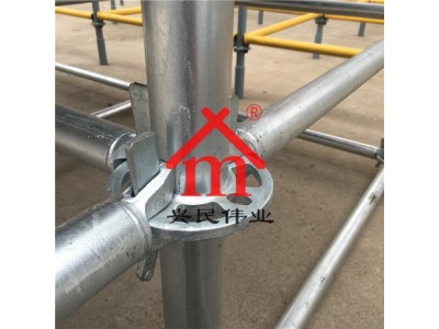 立桿采用套管或者連接棒承插連接,水平桿和斜桿采用桿端接頭卡入連接盤,用楔形插銷以及快速連接棒連接。