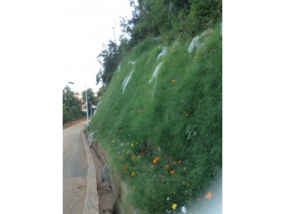 自河南景繡繪遠生態科技有限公司創建以來,在“邊坡綠化裝備與技術研究中心”的強力推動下,不斷推出新的施工技術、研發出新的施工用原材料。景繡生態秉承恒睿團隊認真、細致、一步一檢驗的生產理念,依據張成梁研究員“師法自然的理念效仿蕨類苔癬防雨水沖刷的自然現象。先后創立了“高陡坡創面纖維骨架修復技術”、景繡噴播纖維有機菌肥、防雨水沖刷的AB型高分子材料、景繡仿苔蘚表層纖維,運用多項專利技術使得我們施工后的坡面形成束狀多孔結構,提高防雨水沖刷能力,同時土壤形成蜂窩狀結構,增加坡面保水性,使坡面植被能順利吸收自然降水并把雨水有效儲存,從而將裸露坡面恢復成原始自然生態叢林,一舉打破國內邊坡綠化行業“一年綠,兩年荒,三年死光光”的整體現狀。