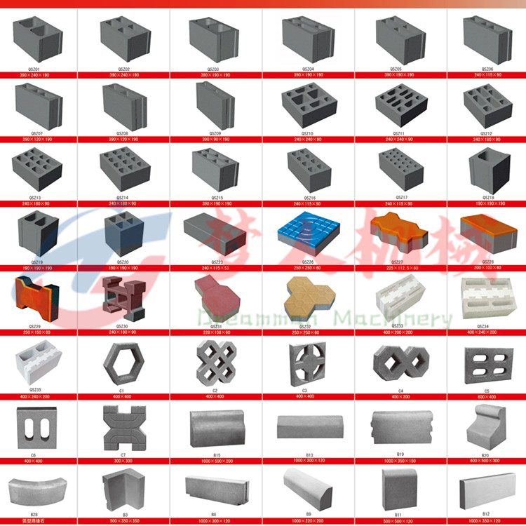 夢人機械生產的磚型分為三類:墻磚、地磚、護坡磚